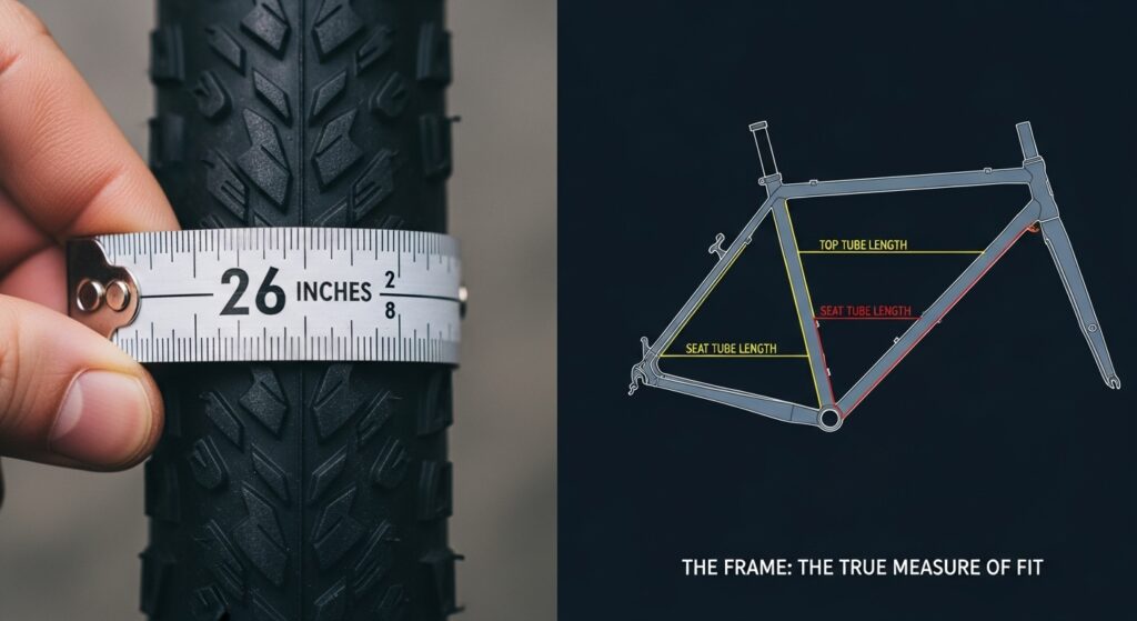 自転車選びにおいて、多くの人が「26インチ」や「27インチ」といったタイヤのサイズに注目しがちですが、実はそれ以上にあなたの乗り心地を左右する重要な要素があります。それが「フレーム」の設計、すなわちジオメトリです。26インチというのは、あくまでタイヤの直径を示す数字であり、自転車全体の大きさや形を示すものではありません。