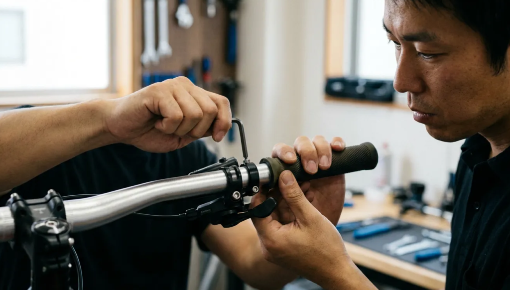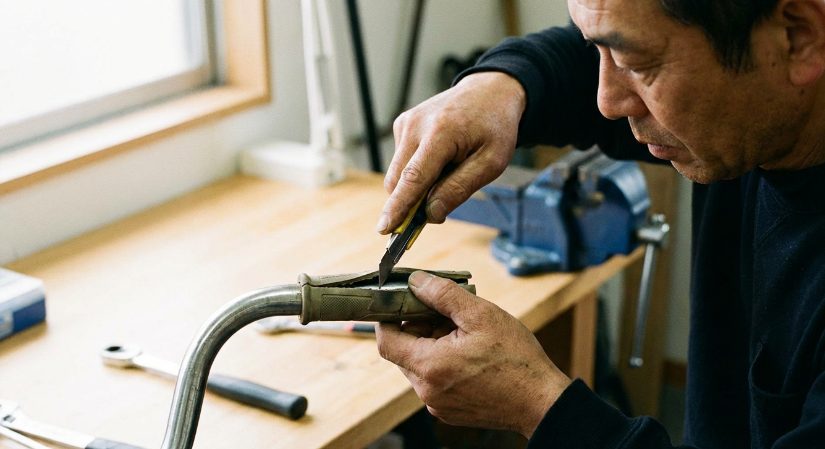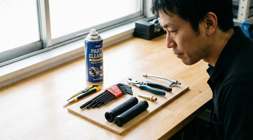 グリップ交換は自転車店でも対応してもらえますが、実は自分でも簡単に行えるカスタムのひとつです。必要な工具も少なく、慣れれば15分程度で完了します。