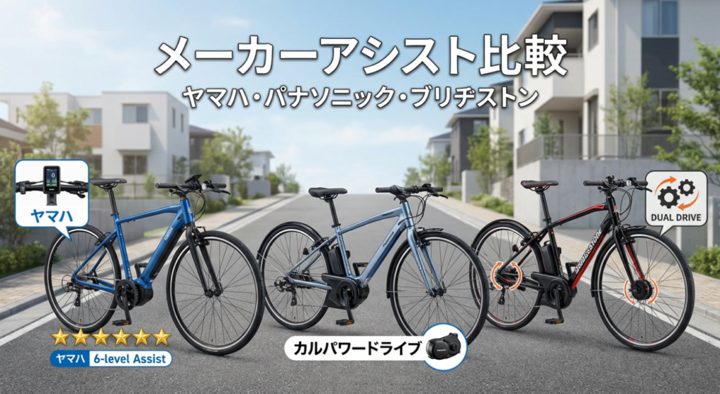 といった具合に、各社が同じ法的枠内で「坂に強い」「長距離に強い」「子乗せに強い」といった味付けを行っています。カタログのアシストレベルやアシスト方式の違いを把握しておくと、「自分の使い方に合うメーカー」が選びやすくなります。